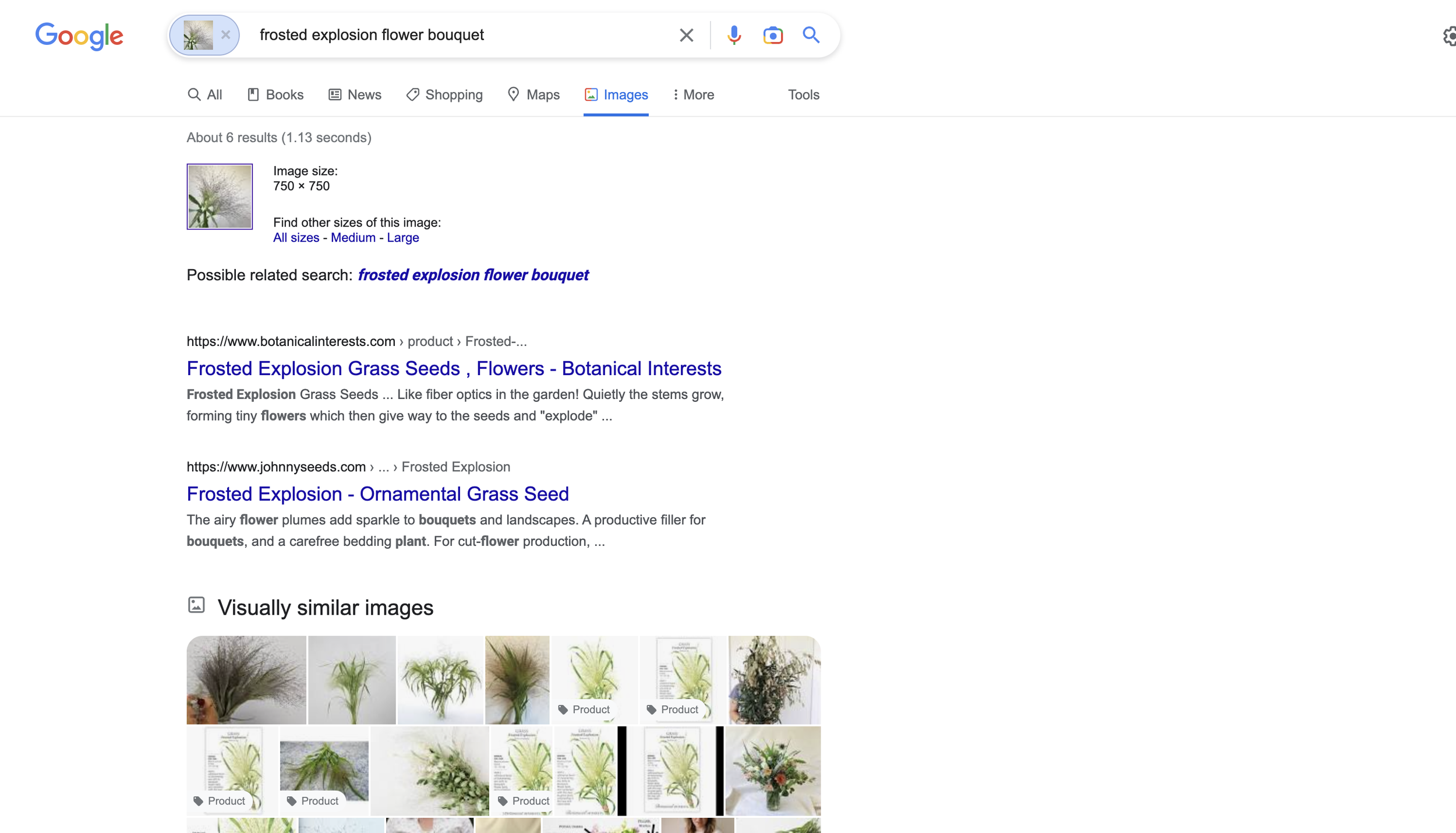You’ll be prompted to drag an image in for searching. Pull in my image of the explosion grass.