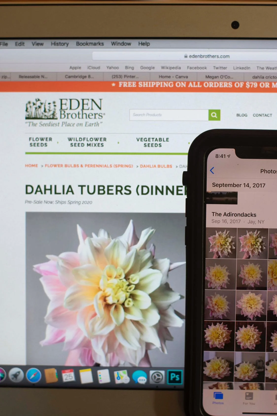 Sometimes images just pop up on my feed or even in marketing emails that I receive that give me pause. Here’s one that I came up organically in 2019. Keep in mind, in 2019 I was just 2 years into my business. I was working HARD to earn money to support my family. Can you imagine opening an email and seeing your own image front and center in a promotion from a big company for the very same dahlia tuber you were offering to customers from your tiny little business?